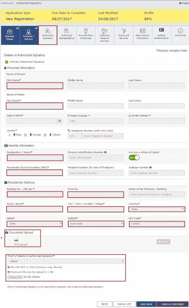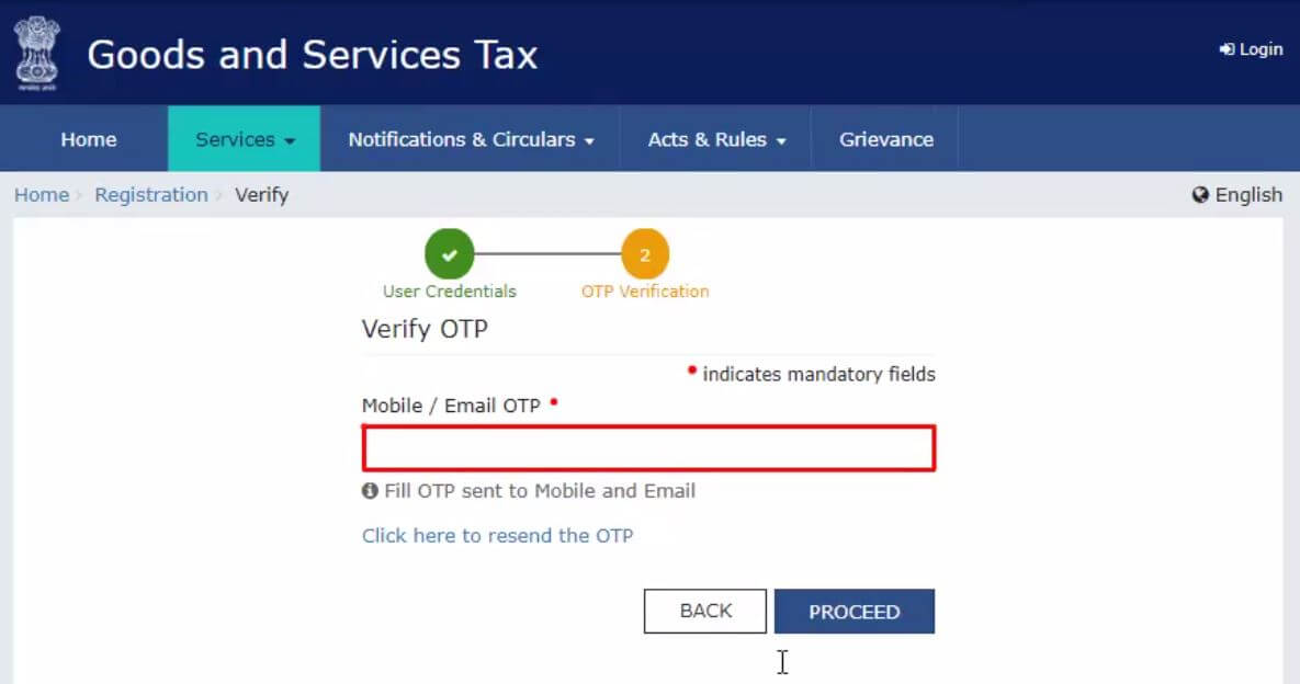 Step 2 – Generate a TRN by entering the following details in Part A and Completing OTP Validation